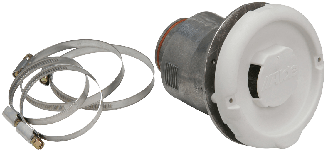 Kamin für Seitenmontage. Wird mit Schlauchklemmen für Abgasschlauch und Ansaugschlauch geliefert.